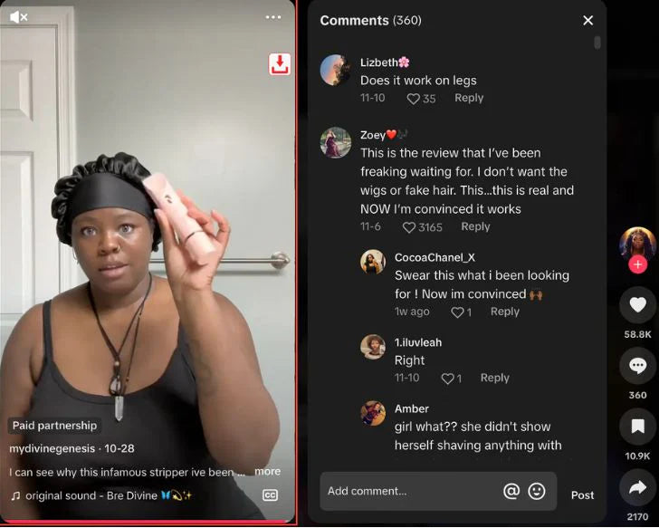 Behauptete, dass ihre Haut nach nur 1 Rasur perfekt glatt und haarfrei war